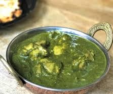 Chicken cooked with fresh spinach cooked in aromatic spices