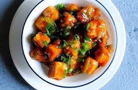 Cubed cottage cheese dipped in gram flour, butter and half fried then finished with fresh capsicum onions and green chilli