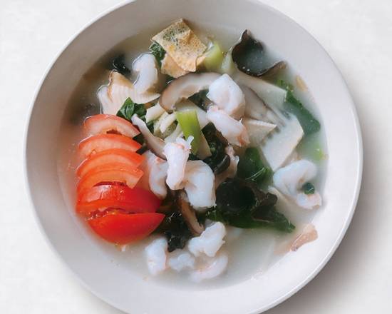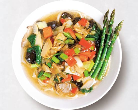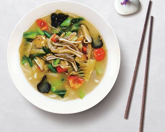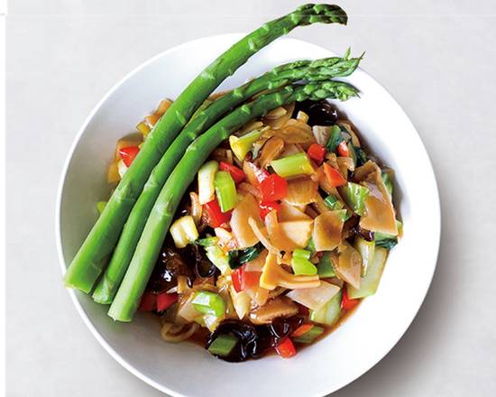 Homemade special sauce , asparagus, capsicum, fungus, bamboo shoots, bok choy, potato, garlic bolt, mushroom, celery, onion The combination of vegetables changes to match the type of ingredients that are at their peak time of the y ear