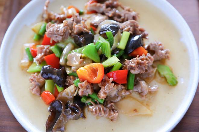 Asparagus, capsicum, mushroom, celery, onion, fungus, bamboo shoots, bok choy, potato, garlic bolt The combination of vegetables changes to match the type of ingredients that are at their peak time of the year.