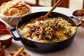 Mutton, raw papaya paste, basmati rice, rose water, star anise...