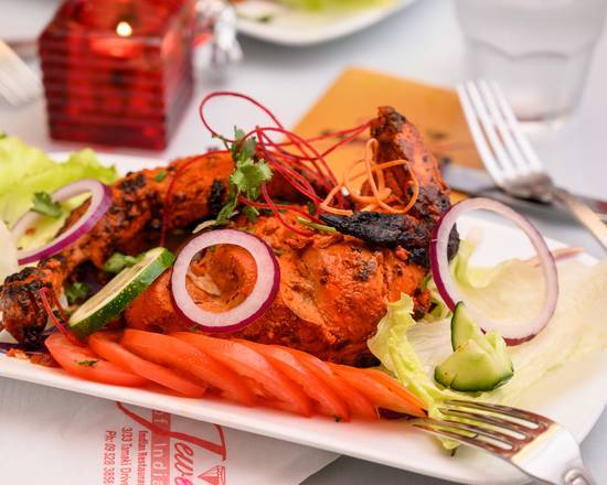 Whole chicken marinated with yoghurt, ginger, garlic, spices and roasted in tandoor.