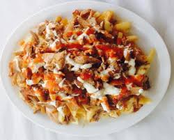 Frozen french fries, ground lamb, plain greek yogurt, feta cheese...