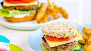 Beef Patty, Lettuce, Tomatoes, Mayonnase and Tomato Sauce