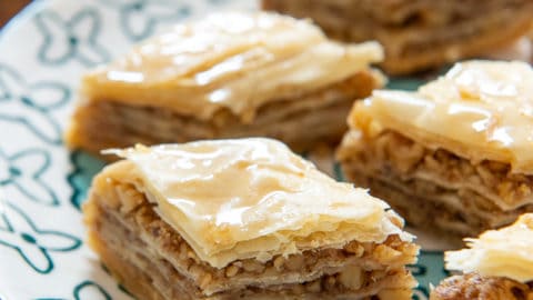 Flavourful spread or dip made from blended roasted red bell peppers and walnuts, fresh garlic and tomatoes, pomegranate molasses, and sumac served with fresh bread