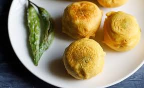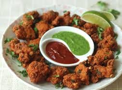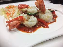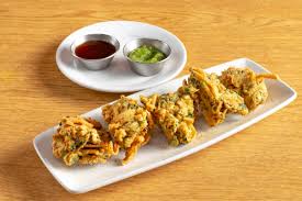 Deep fried prawn coated in chickpea flour with ginger, garlic and spic...