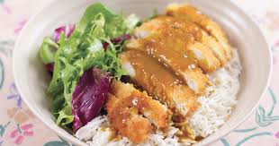 Chicken Karaage on rice served with salad (dressed in our unique fruit...