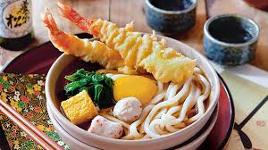 Shrimp tempura, udon noodles, red fish cake, soy sauce, chili seasonin...