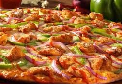 Napoletana, cheese, chicken with bbq and chilli sauce, green pepper...