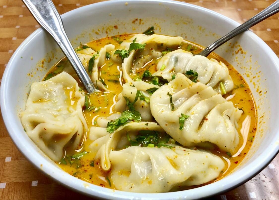 Soy sauce, momos, chilli sauce, capsicum, garlic