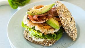 Grilled chicken breast, avocado spread, streaky bacon, lettuce, onion,...