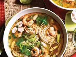 On steamed egg noodles— a refreshing and uplifting meal with herbs, freshly squeezed lemon juice and home made sweet chilli sauce, sweet, sour & a touch of spicy. also delicious with pork. Each meal contains loads of market fresh mix vegetables