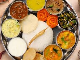 Sweet, chapati one piece , salad dhal, veg pulao, three types of North...