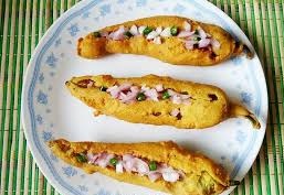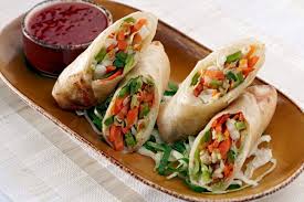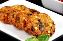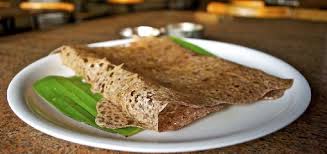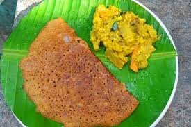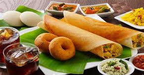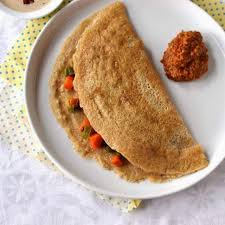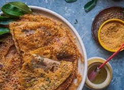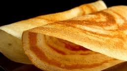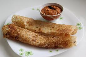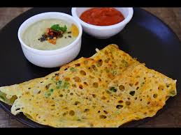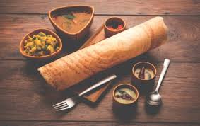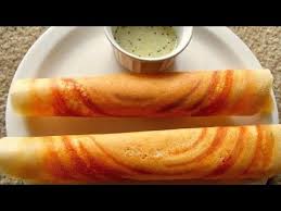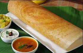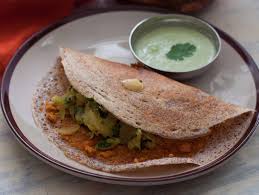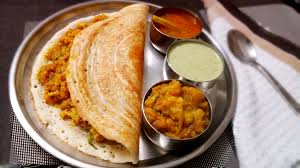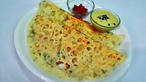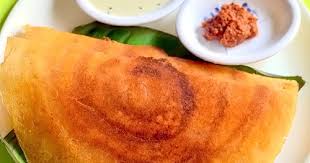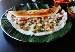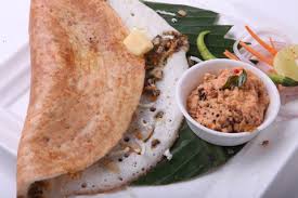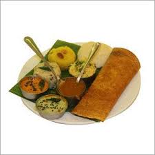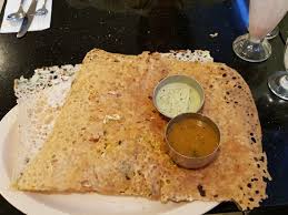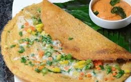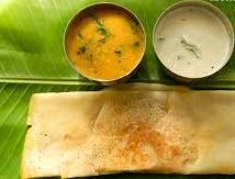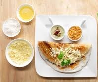 Thin rice crepe filled with vegetables. Served with sambar and three v...