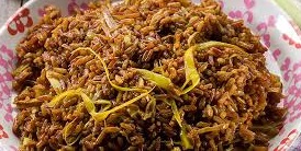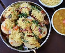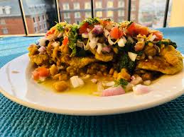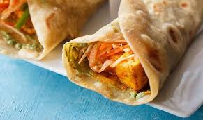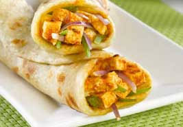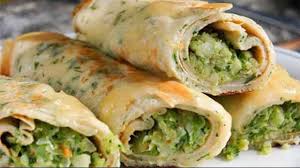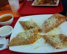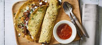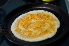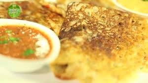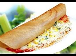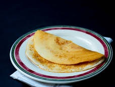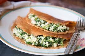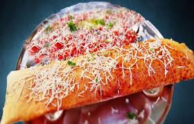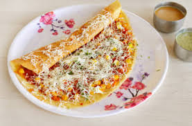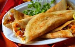 Thin rice and lentil crepe filled with grated cheddar cheese, potatoes...