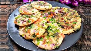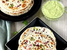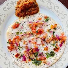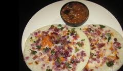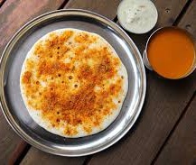 Thick rice and lentil pancake topped with onion. Served with sambar an...