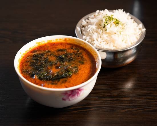 Gravy made of pureed spinach with freshly ground spices. Served with basmati rice.