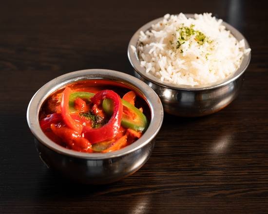 Chicken, lamb or vegetable pieces cooked in a gravy of onion and spices. Served with basmati rice.