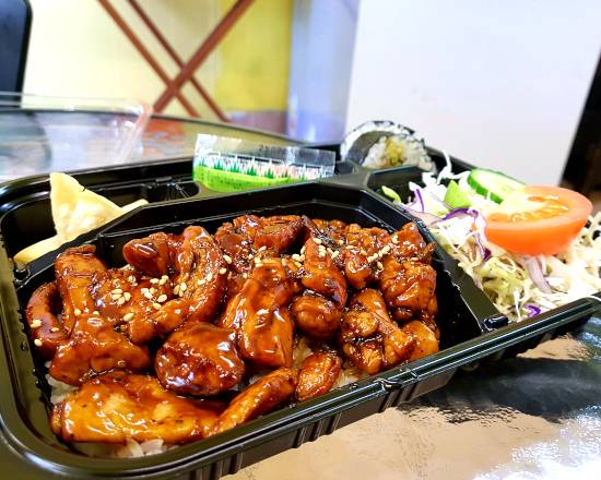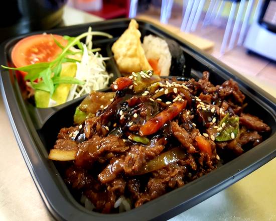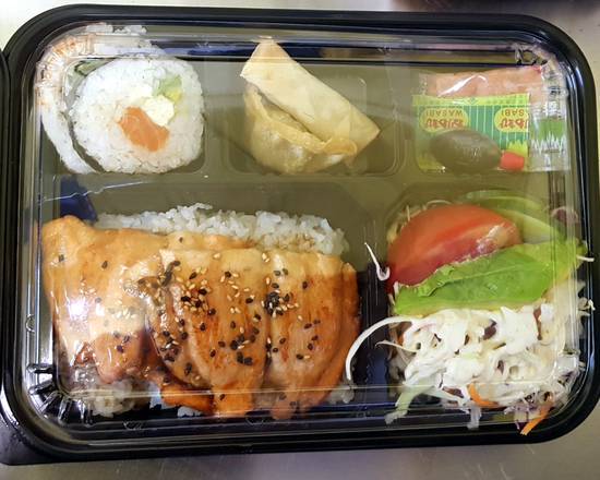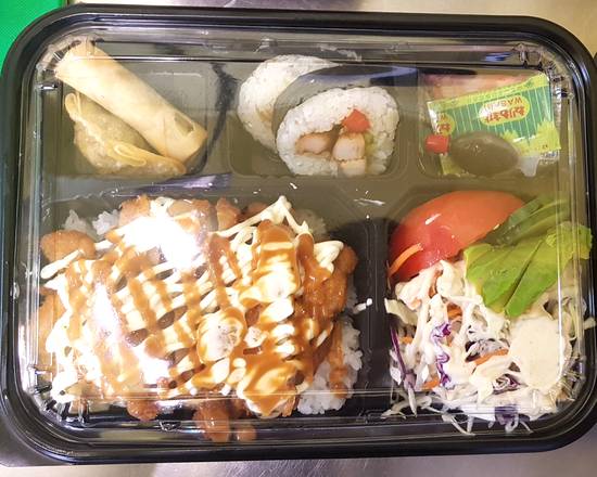 The Photo shows big Size. All sizes of Bento comes with rice n Salad 1. Small Size : 1 Sushi Roll, 1 Tempura 2. Big Size : 2 Sushi Roll, 2 Tempura, Wasabi, Ginger, Soy n Size bigger as Photo.