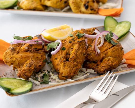 Boneless pieces of chicken marinated with Indian spices and grilled in tandoor oven.