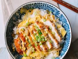 Deep fried chicken (pork) with fried vegetable and egg sauce on rice