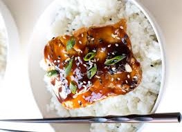 Fried salmon with teriyaki sauce, fresh salad and rice + miso...