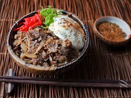 Seasoned beef with teriyaki sauce, fresh salad and rice + miso...