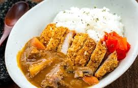 Deep fried chicken (pork), curry sauce with fresh salad and rice + miss