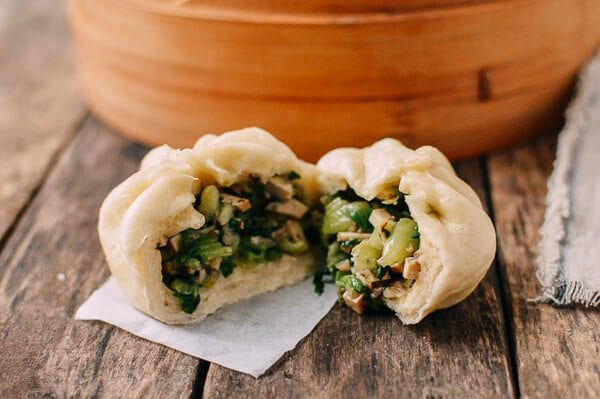 Baby bok choy, dried bean curd, soy sauce, fresh shiitake mushrooms, sesame oil